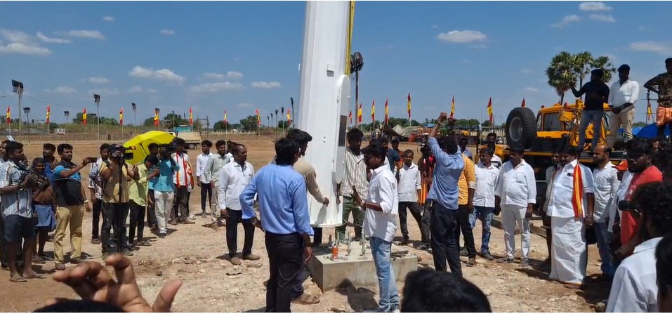 கான்கிரீட்டால் அடிப்பகுதியில் விரிசல் விட்ட நிலையில் நாளை விஜய் அவர்கள் கொடியேற்றுவது சந்தேகமே